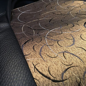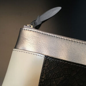 (銀白タイプ:黒革金彩入ヒビ入り)、牛革箔貼り、牛革スムース