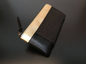 (黒金タイプ:黒革金彩入ヒビ入り)、牛革箔貼り、牛革スムース